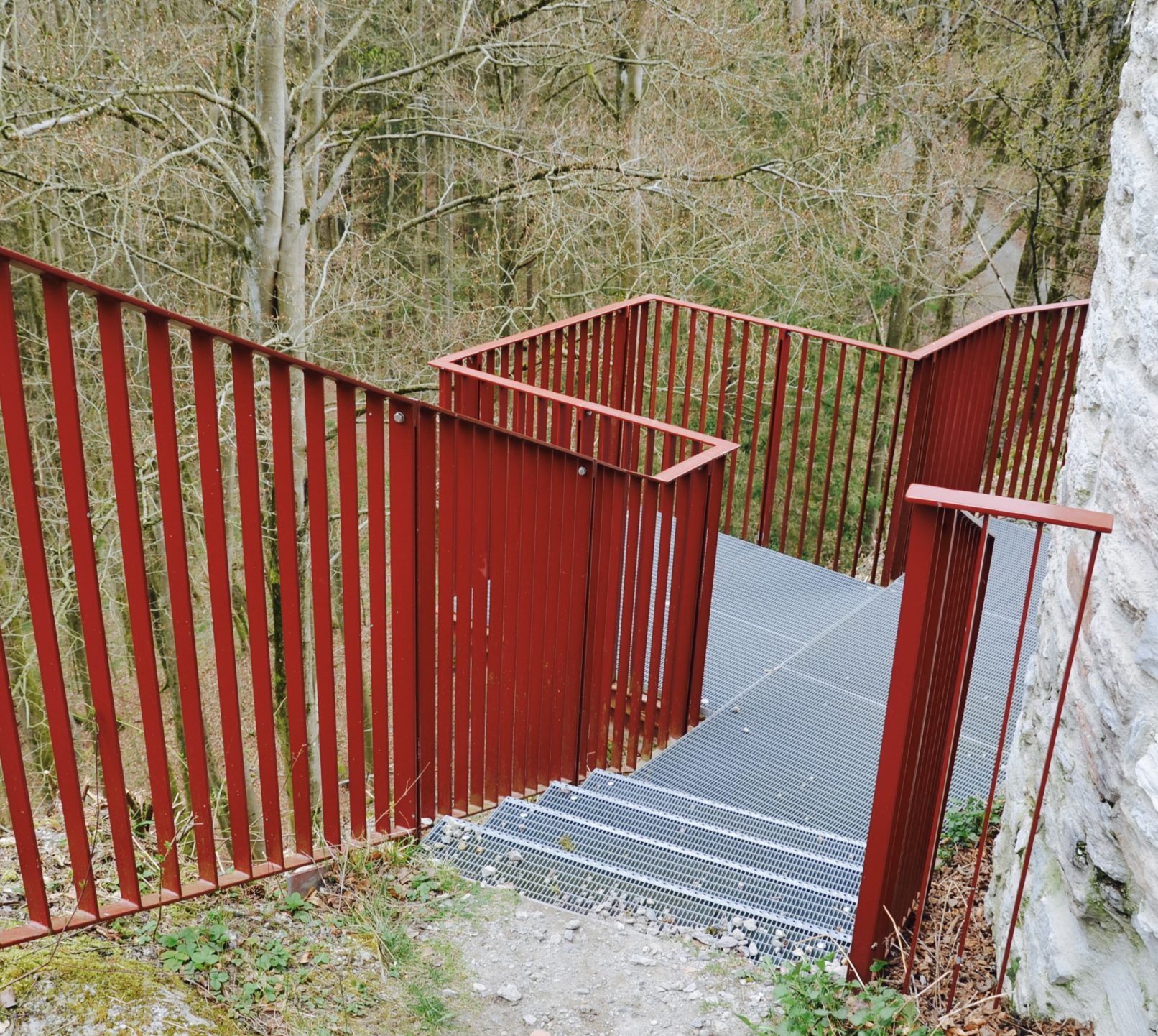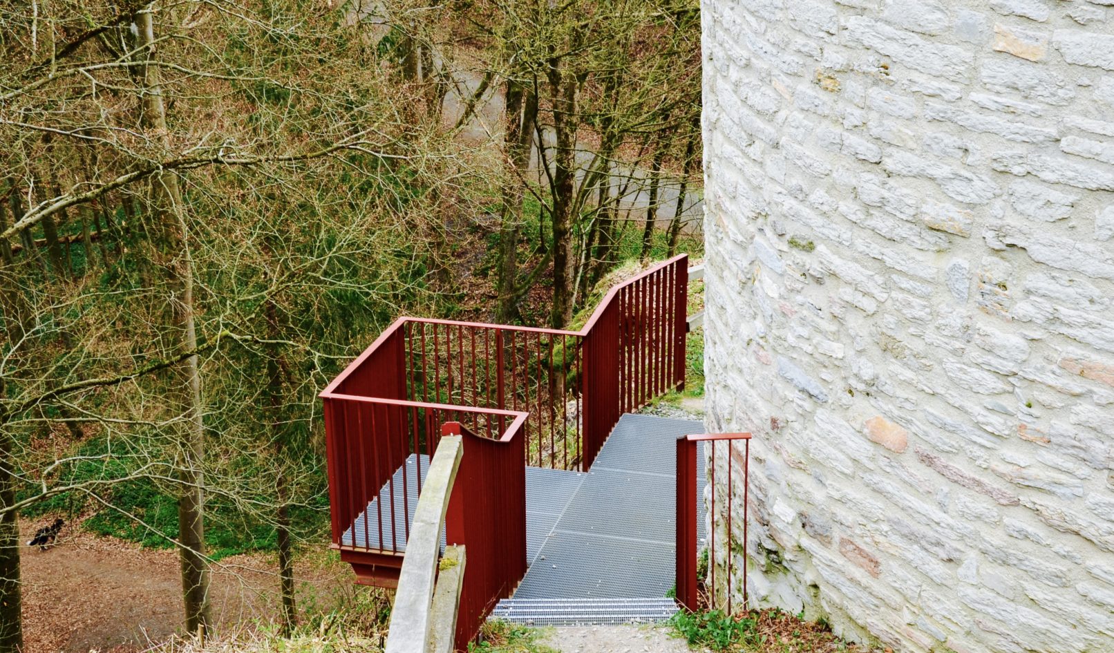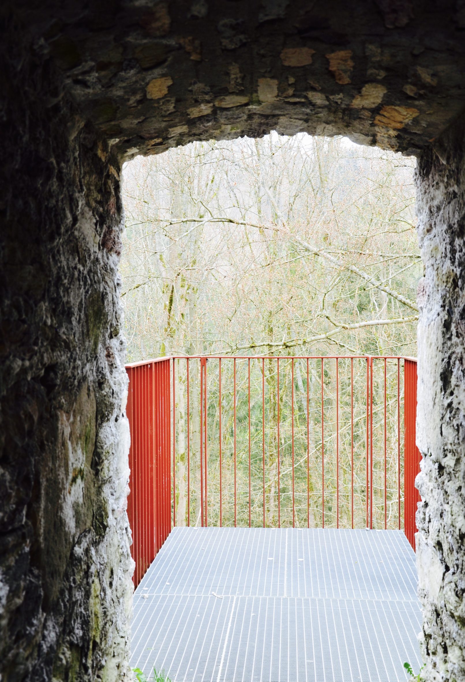 Design of the access and viewing platform for this historic tower in the Franconian Forest Nature Park, Upper Franconia. Dating from the year 1100 the Nordeck Castle Ruin is a High Medieval castle ruin in a in the Upper Franconian district of Kulmbach in Bavaria.