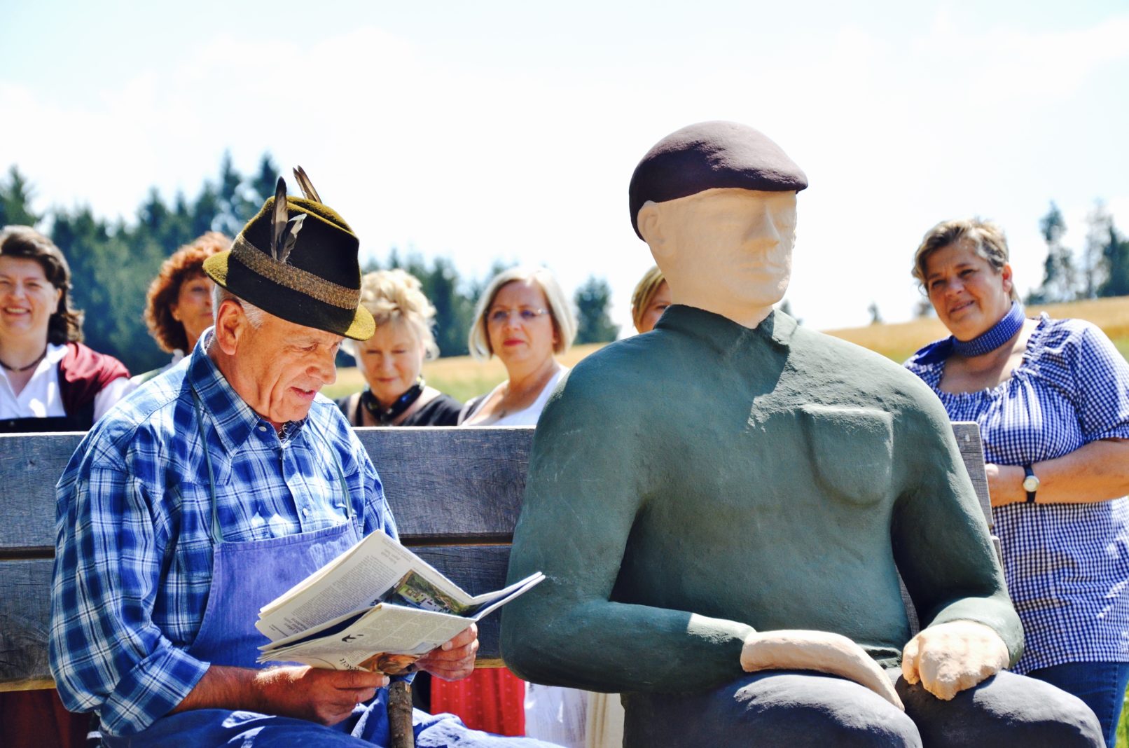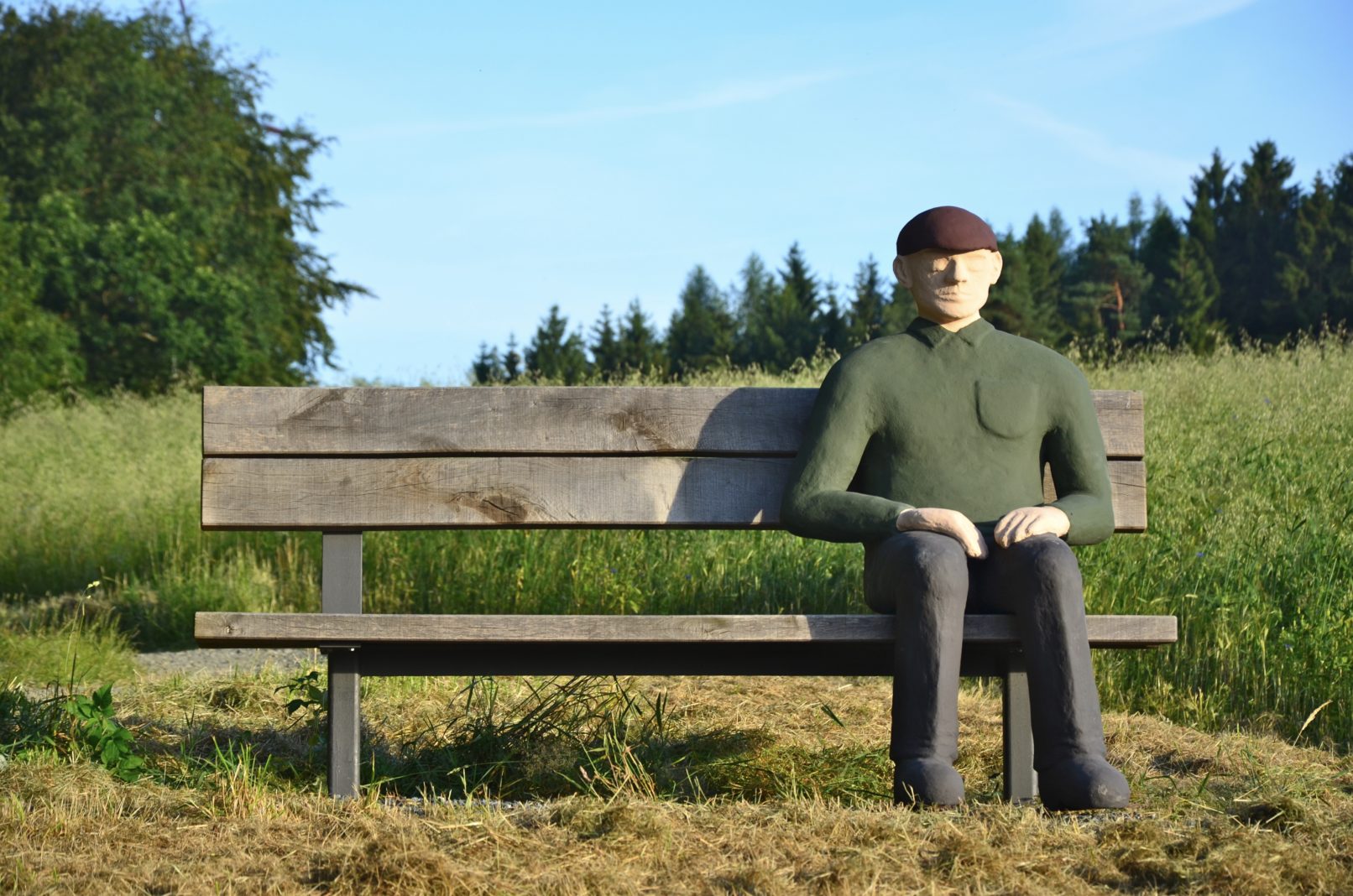 Johann is designed to invite visitors to interact with him. Whether you sit down next to him for a personal conversation, to enjoy the view or simply to take a break during a walk, Johann creates space for encounters. He also offers the perfect opportunity to take a photo with the hiking group or a selfie. His main goal is to attract attention, arouse curiosity and draw visitors‘ attention to the region’s beautiful hiking trails, making them a little more fun. You can find Johann sitting on a bench overlooking the idyllic village of Weißenbach on the ‘Franzosen Weg’, one of the many signposted hiking trails in the Frankenwald nature park.