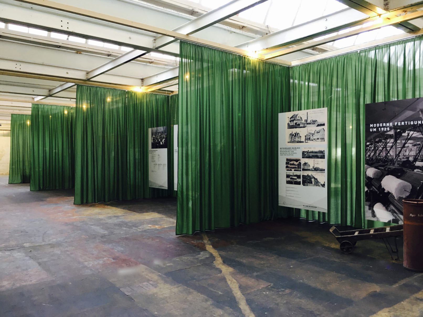The history of the Kulmbach spinning mill – told in a temporary exhibition in the large disused production hall of the former factory in Mainleus. For more than a century, the spinning mill shaped the lives of the citizens of Mainleus, its social services, leisure facilities and factory housing estate and made the town of Mainleus uniquely special.
