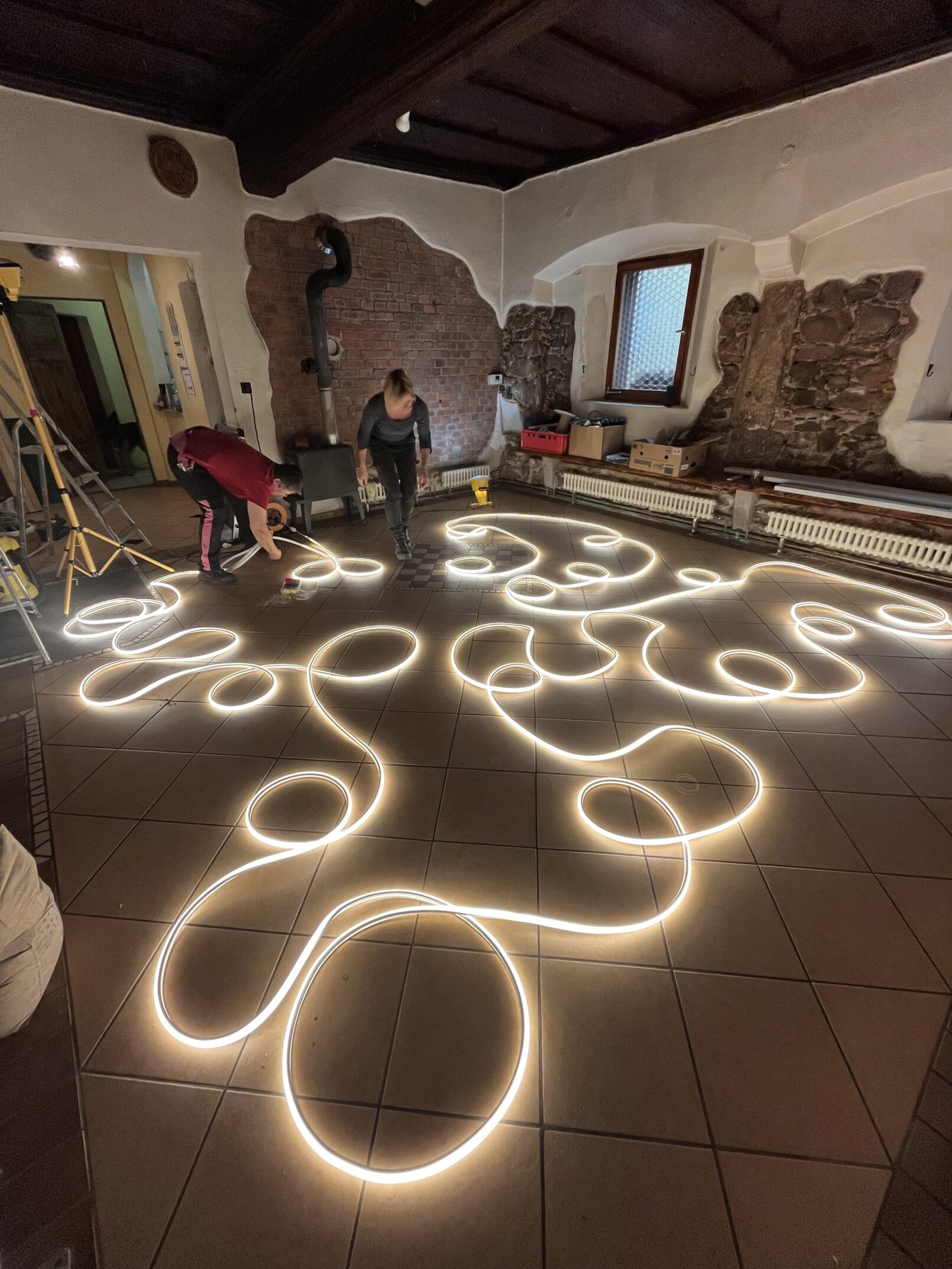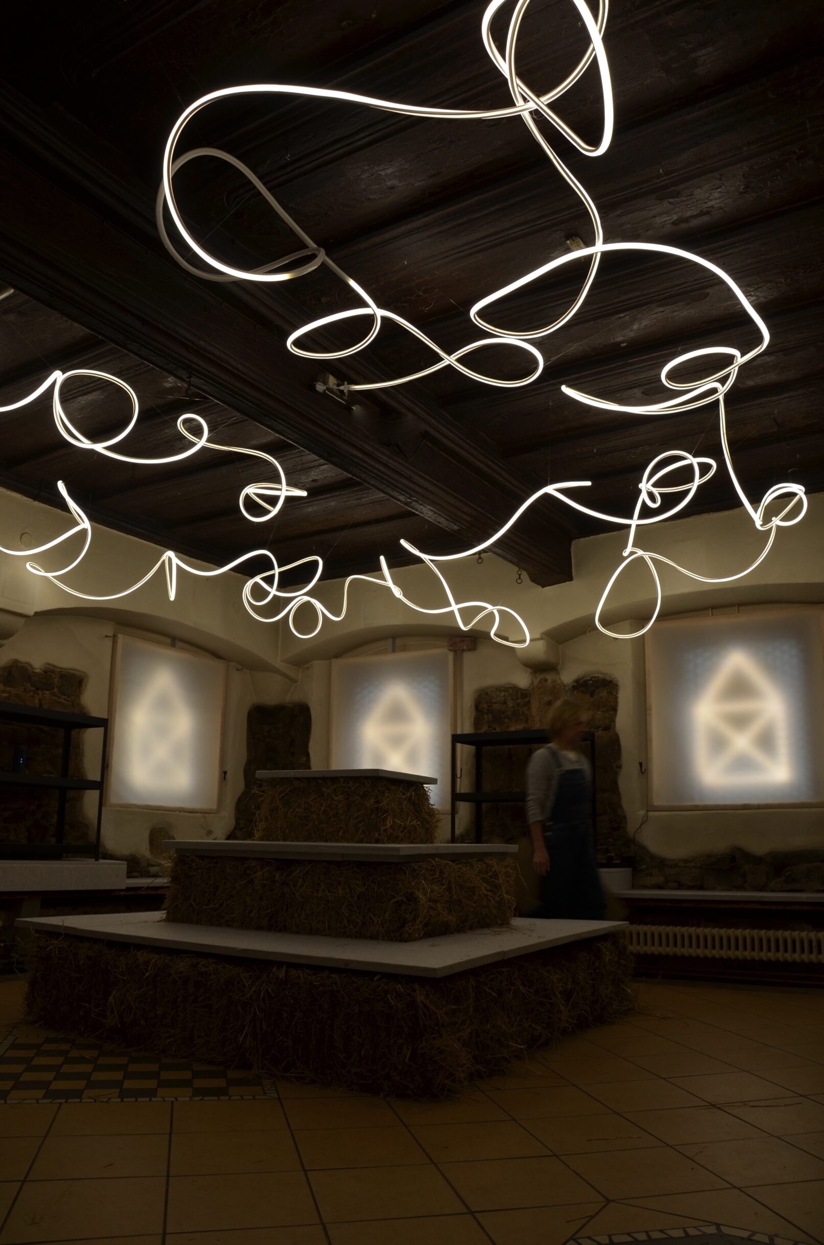 Der gesamte Raum – von der Einrichtung bis hin zur einzigartigen Lichtkunstinstallation – wurde mit viel Liebe zum Detail und in enger Zusammenarbeit mit ehrenamtlichen Helfern gestaltet. Alle verwendeten Materialien wurden entweder von Mündel Recycling gespendet oder sind wiederverwendbar und werden nach dem Ende des Pop-up-Stores einer neuen Verwendung zugeführt. Nachhaltigkeit war ein wichtiger Aspekt des gesamten Projekts.