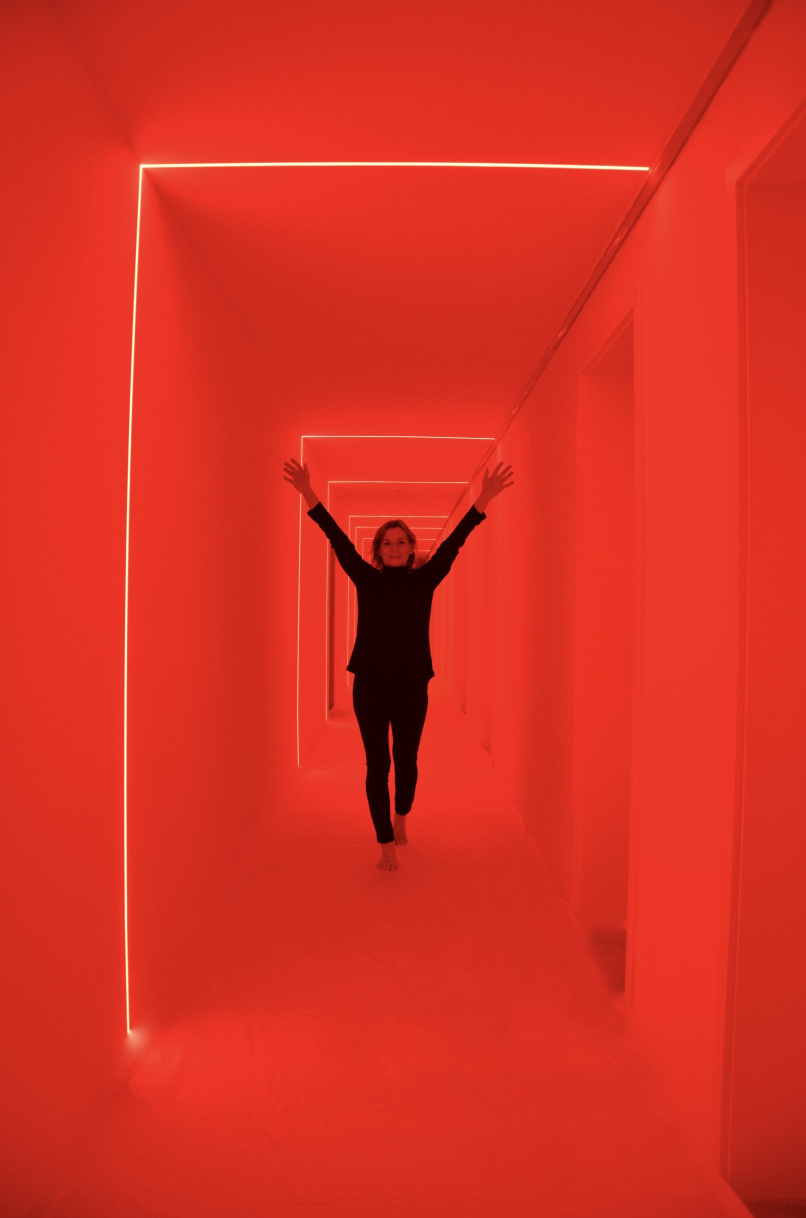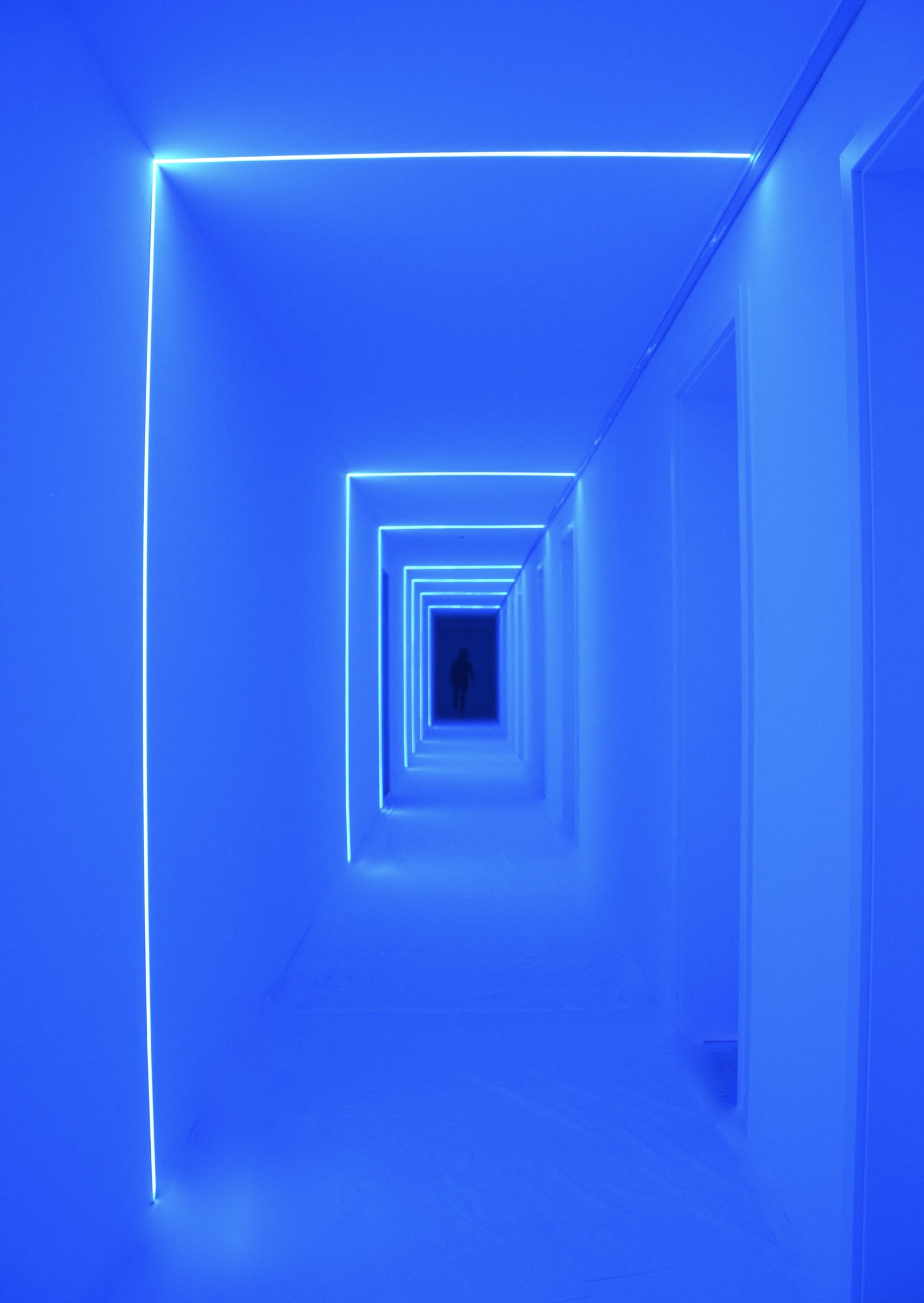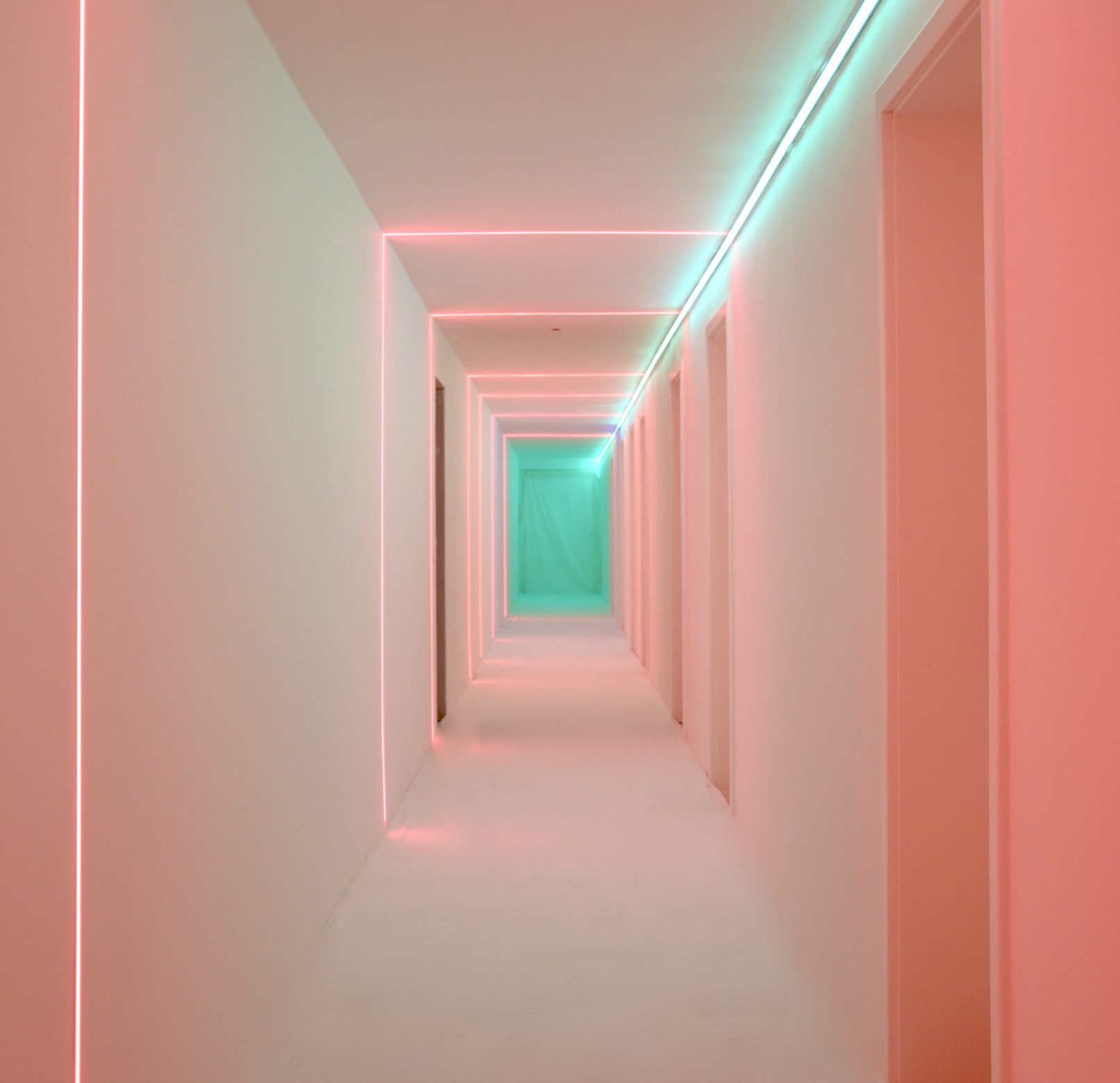 Architektur-, Innen- und Landschaftsgestaltung eines großen Privathauses in Oberfranken, einschließlich dieses 40 m langen interaktiven „Lichtkorridors“. Die Kunstinstallation oder Lichtkunst, ermöglicht endlos viele Farb- und Rhythmus Kombinationen